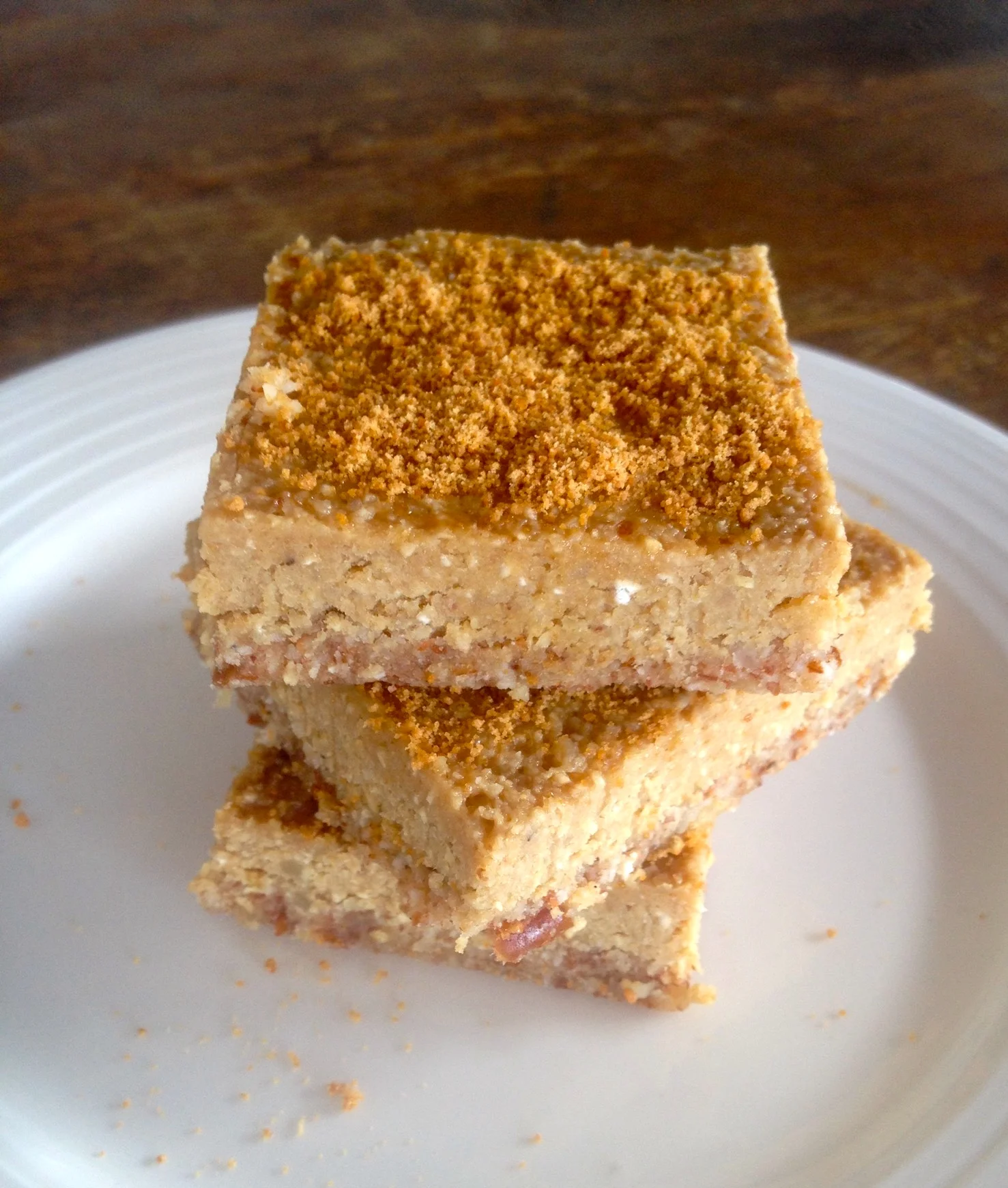 One of my favourite desserts - ginger slice from The Unbakery (little bird). This recipe is very spicy (warning for those who don't like ginger like one of our sons!) as it contains so much fresh ginger juice and 1/2 cup of ground ginger! This recipe requires a good/reliable blender and a good food processor. I adapted it a little bit from the original recipe to make it simple and less sweet. You will have to go easy on ginger if you prefer your slice mild.